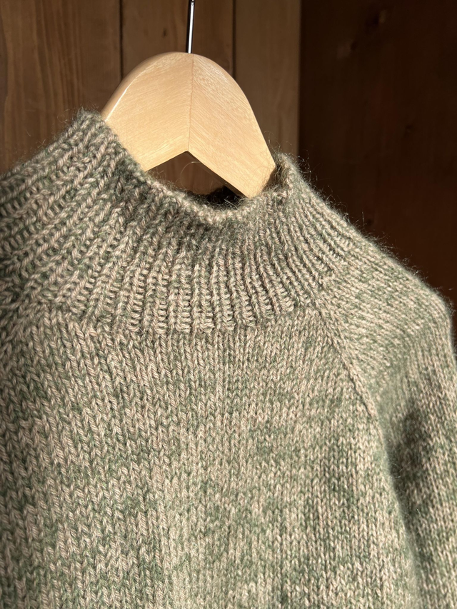 Strih: uvoľnená silueta, výrazný stojačik, raglánové rukávy. Spodné kraje ukončené širokou manžetou. Dĺžku svetra si je možné prispôsobiť.